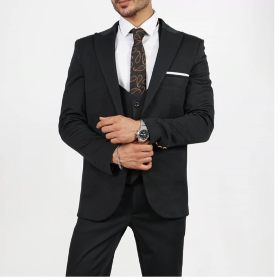 کت و شلوار مشکی مردانه S-1 همراه با ژیله، انتخابی شیک و بینظیر برای آقایانی است که به استایل کلاسیک و جذاب اهمیت میدهند. این ست سهتکه با طراحی مدرن و برش دقیق، مناسب برای مجالس رسمی، جلسات کاری و حتی مراسم عروسی است. ژیلهی موجود در این ست، ظاهری منحصربهفرد و متفاوت به شما میبخشد و به راحتی میتوانید استایل خود را با انواع پیراهن و کراوات ست کنید. استفاده از پارچه با کیفیت بالا در دوخت این کت و شلوار مردانه، علاوهبر راحتی و دوام، ظاهری لوکس و جذاب به آن بخشیده است. رنگ مشکی کلاسیک، همیشه مد روز بوده و به راحتی با اکسسوریهای مختلف هماهنگ میشود. دوخت تمیز، یقهی استاندارد و جیبهای کاربردی، این محصول را به یک انتخاب ایدهآل برای آقایان خوشپوش تبدیل کرده است. با کت و شلوار مشکی مردانه S-1 همراه با ژیله، اعتماد به نفس و جذابیت خود را در هر جمعی دوچندان کنید. همین حالا این ست خاص را سفارش دهید و از تجربه یک پوشش بینقص لذت ببرید!
